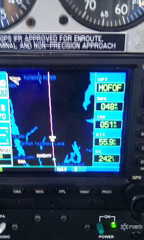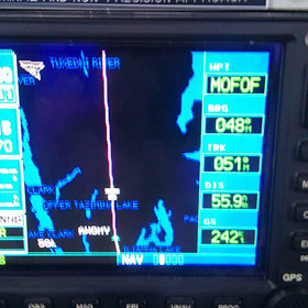 Notes:This is enroute with passengers from a fishing lodge in IGG to ANC at 9000 ft 158 KIAS. The photo of the aircraft on the beach was taken at the TSIU River. The white and gold DC3S is one of TransNortherns passenger aircraft and the one I was flying with this groundspeed. The orange aircraft is our freighter DC3S.