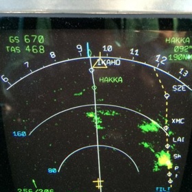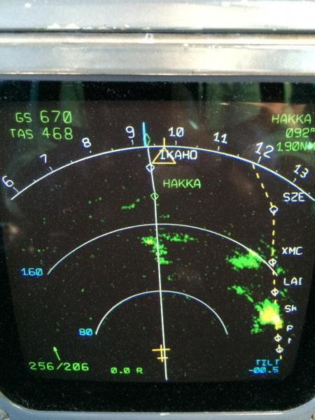 The winds were nice for a Ground Speed record beat, and at that moment we were deep inside the Jet-Stream. No turbulence by then, but after 45 minutes it started with continued light to medium chops.