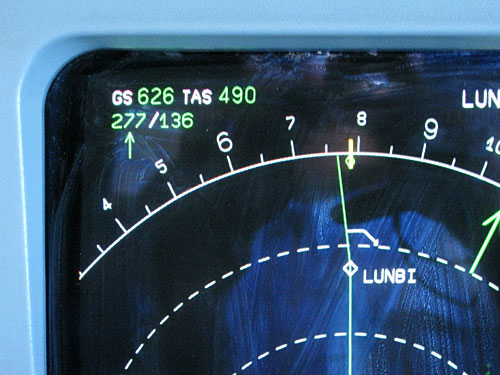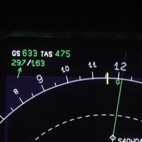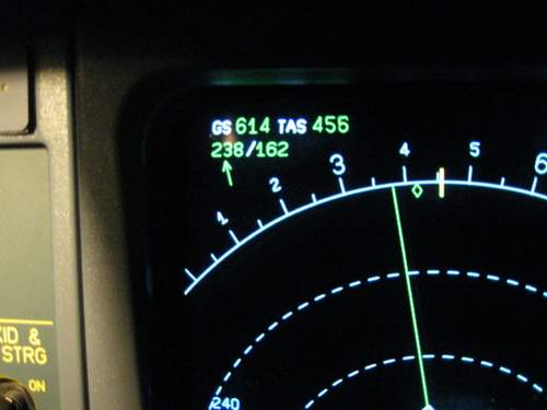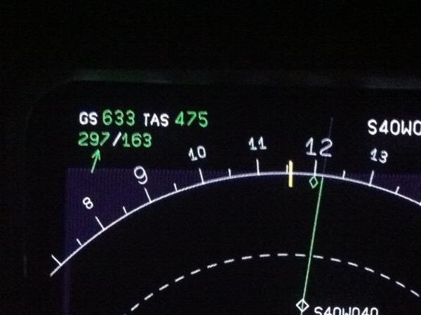 Notes:We were flying from Auckland to Buenos Aires, when in the middle of Pacific Ocean, we got a jetstream of 160/190 kts. In fact we reached 625kt of GS but I took this photo with 614kts.