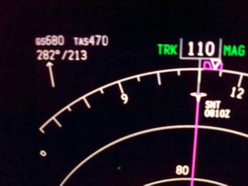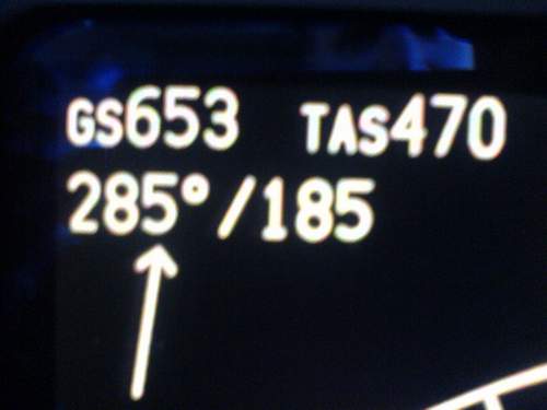 Notes:Caught this one on climb out from Perth (YPPH) to Sydney (YSSY) Australia at about FL370. It actually got up to 655kts but I wasn't quick enough with the camera, so this will have to do!