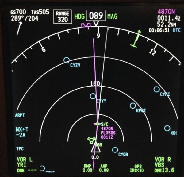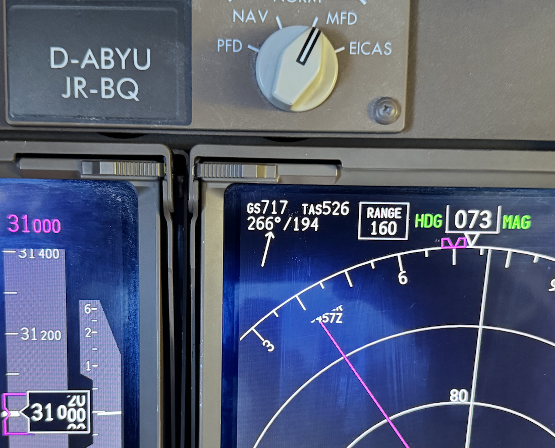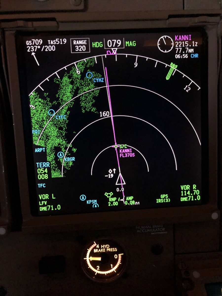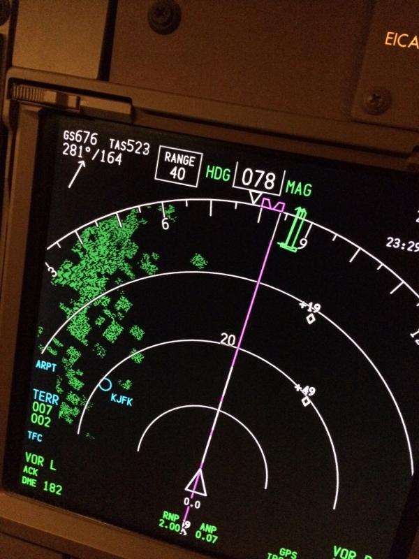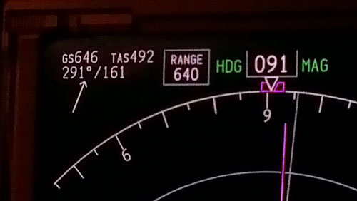 • Notes: cruising at only M0.84 with a 181kt wind almost exactly from behind. Easbound over the atlantic.
