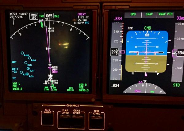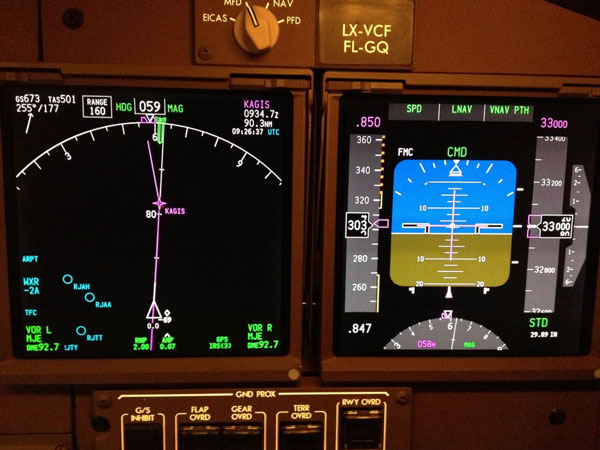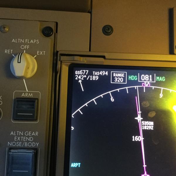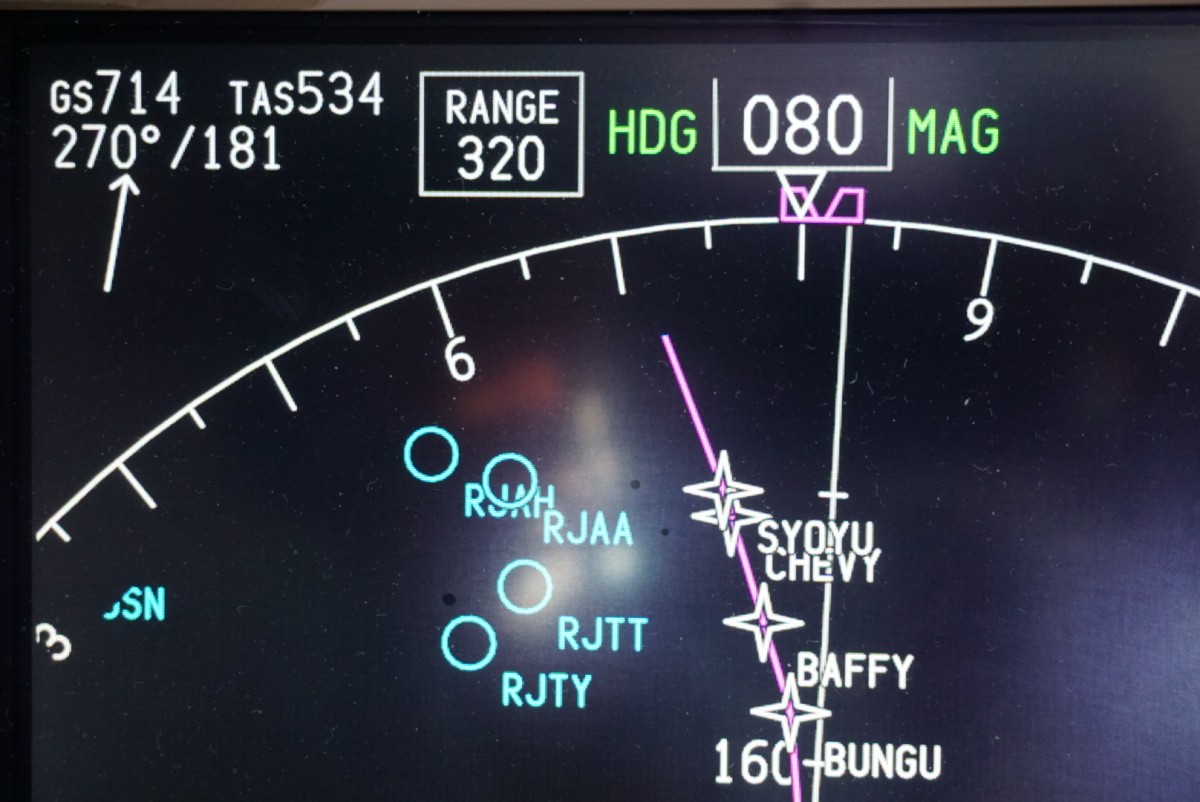 Abeam Narita, cruising at FL330 from HKG to ANC. Actual weight was 370 000 kgs.