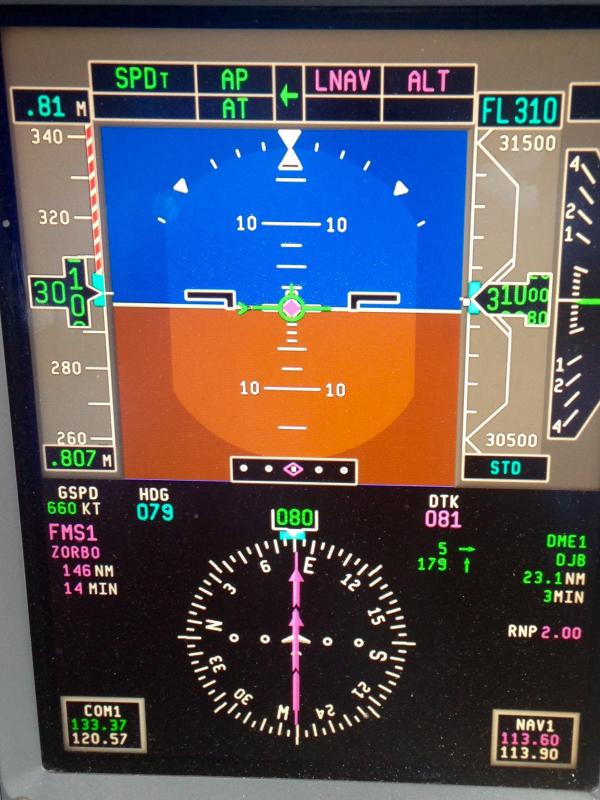 Southbound over Saudi Arabia at FL370 with nearly all of the 155kts as tailwind. A very smooth ride at M.081.
