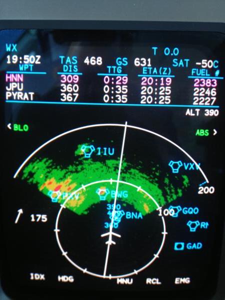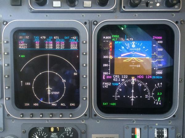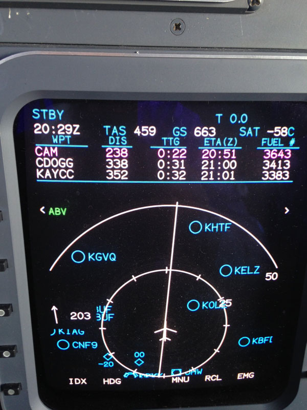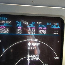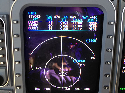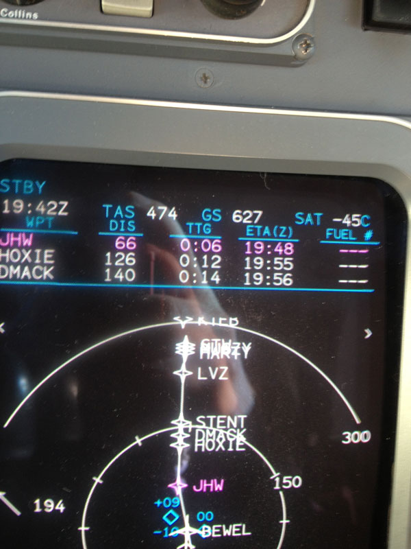 Notes:Flying from St. Louis (SUS) to Portland, Maine (PWM) at FL390. On the MFD picture (which only shows 663 knots) you can see the 203 knot tailwind, then the groundspeed increased to 664 and we got the close up picture of that!