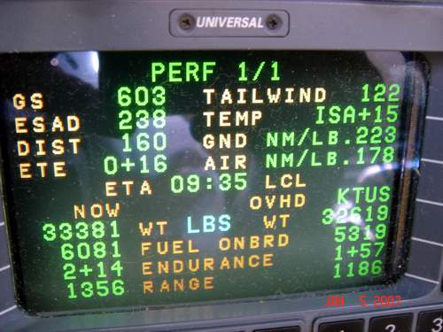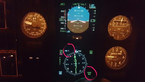 • Notes: Cruising at Mach 0.814 with a 158 knots tailwind allowed us to reach 631 knots of ground speed.