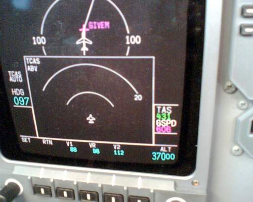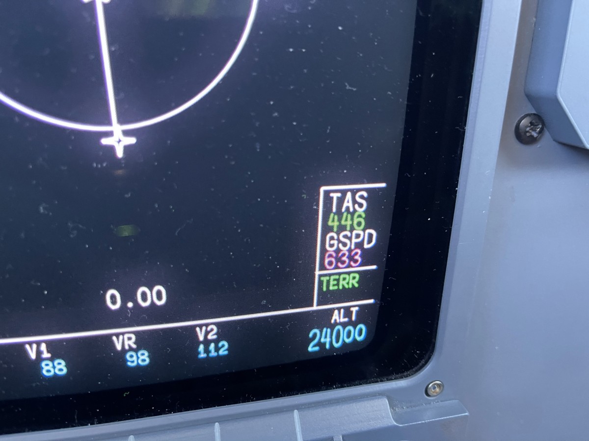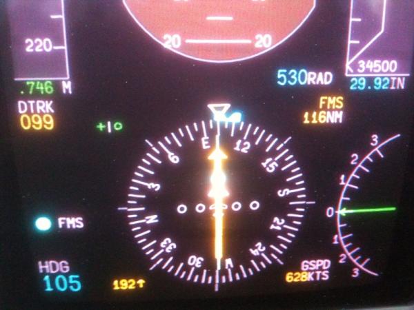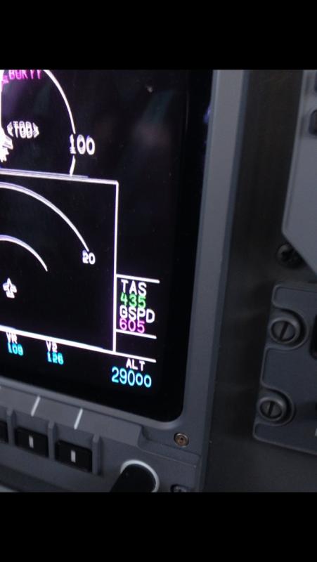 Notes:FL370 over West Texas, USA around midnight enroute from Palm Springs, CA to Mobile, AL. Actually got up to 602 kts but we put the camera phones away too soon!