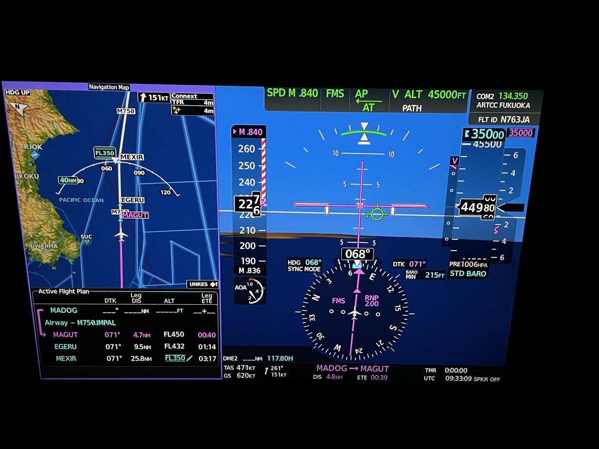 • Notes: 620 knots ground speed @FL450 enroute to Japan