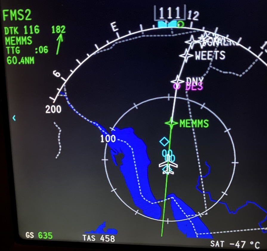 • Notes: 154 kts of tailwind. Usually we fly at .72, but how could I not push the levers up and see what I could get!! This is at .78 leaving FL370