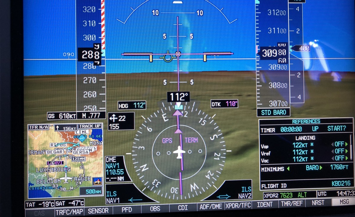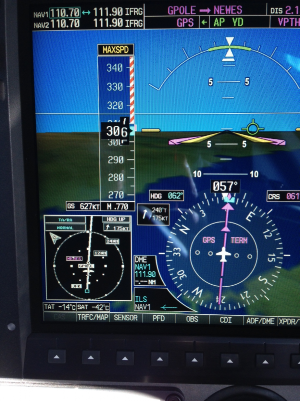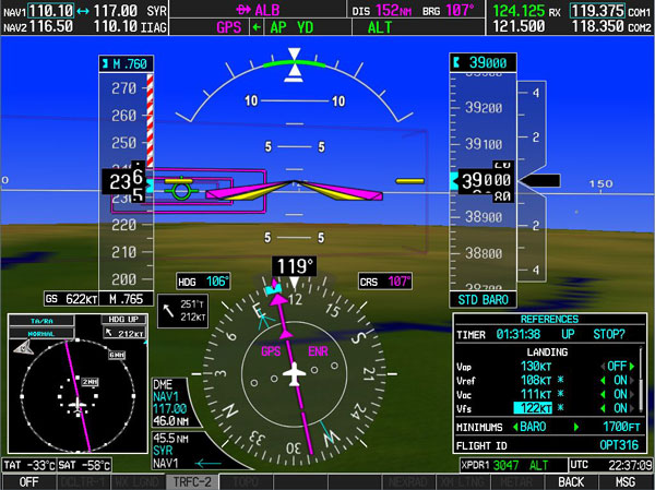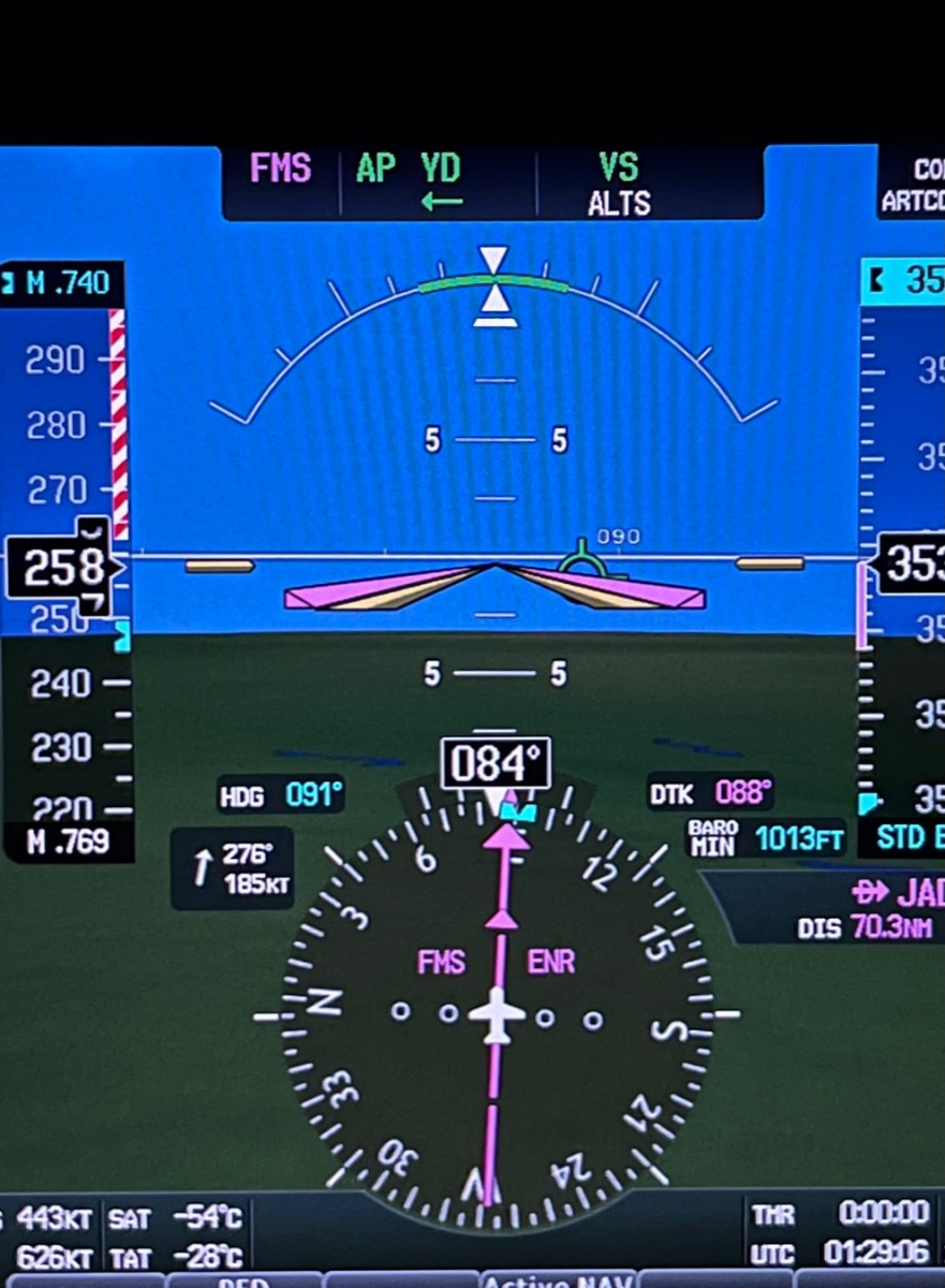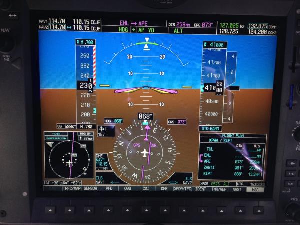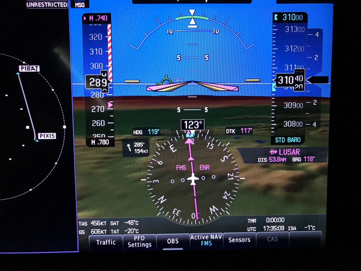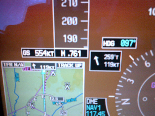 FL390, level flight, cruise thrust Note this is not a photo, but a direct screen shot from the Garmin system to SD card.