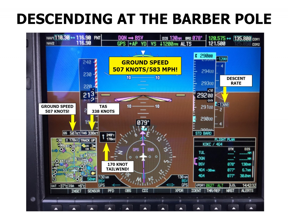 • Notes: Over southwest Ohio with 170 knots directly on the tail. Descending at the barber pole
