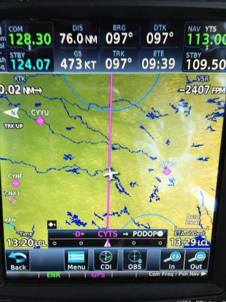 CYHD Dryden to CYQT Thunder Bay, top of descent from FL210.
