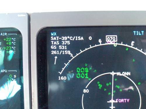 We managed to reach 530 kts but the mobilephone froze on me. As you can see from the wind direction and speed, 530 kts is within the realms of possibility, but 527 kts is unfortunately all I can prove.
