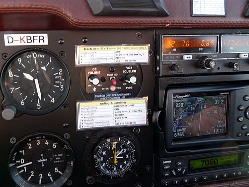 Notes:Groundspeed was 121 knots (as stated by the green GPS on the right). The GPS inticates km/h (usually used for gliders in Germany), if you recalculate it, it shows 121 knots.