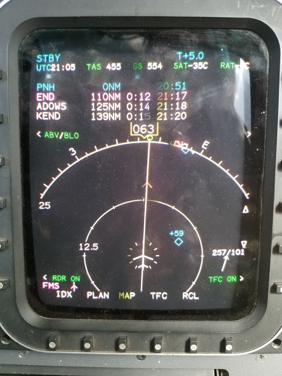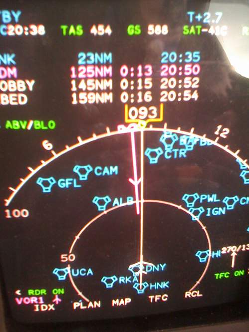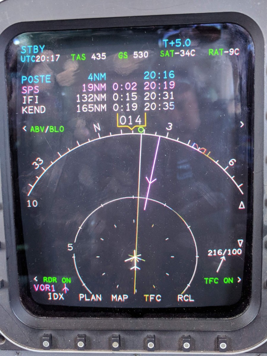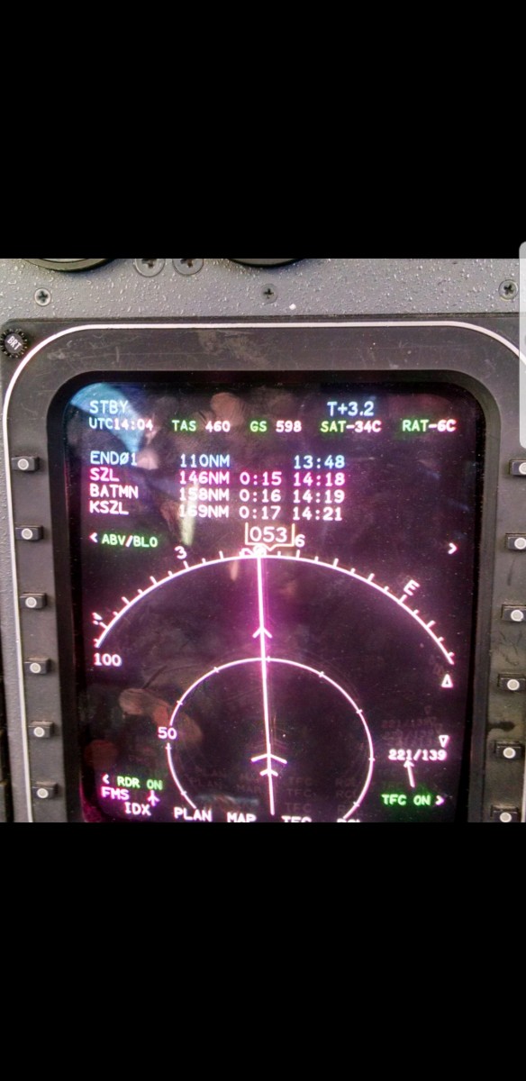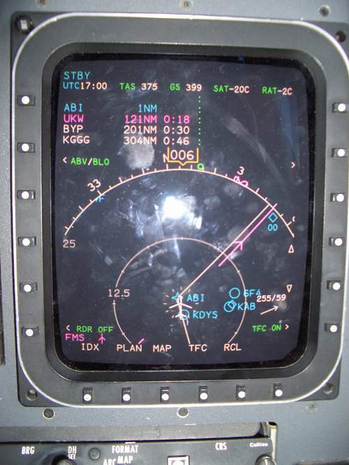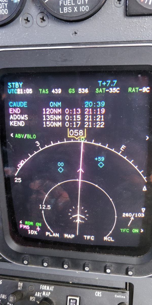 About to turn east over Abilene, Texas. A few minutes later it was 430 kts as you can see by the wind in the lower right of the MFD.